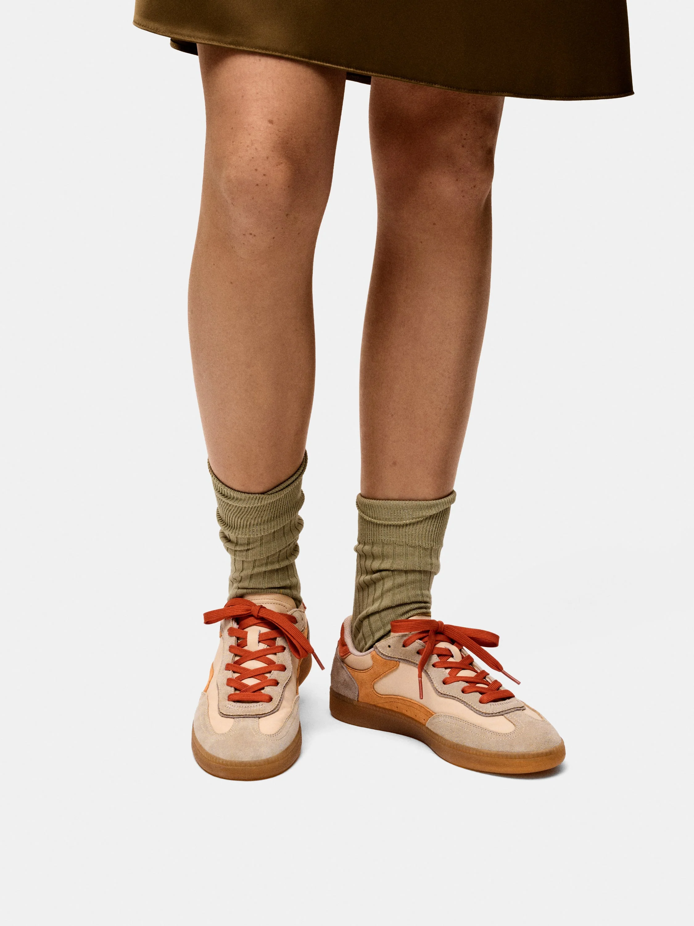 Classic-style sneaker with a nostalgic feel. Its design carefully combines different materials, shapes and tones to achieve a perfect balance between aesthetics and functionality. Crafted from nylon and premium suede, it features a caramel-toned rubber sole that adds a vintage character. The padded heel, flexible tongue and Memory Foam insole ensure a comfortable, lightweight and adaptive stride throughout the day. The logo is subtly integrated on the heel.